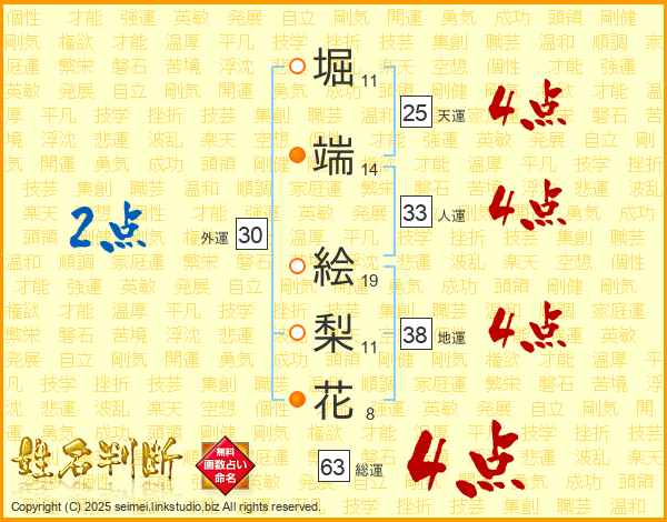 堀端絵梨花さんの総運は63画の4点!