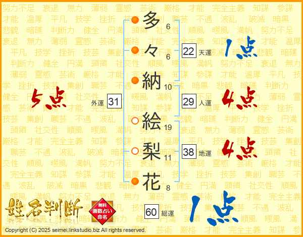 多々納絵梨花さんの総運は60画の1点!
