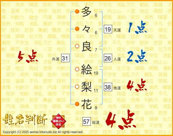 多々良絵梨花さんの外運は31画の5点!