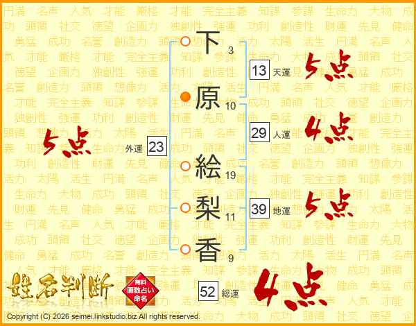 下原絵梨香さんの総運は52画の4点!
