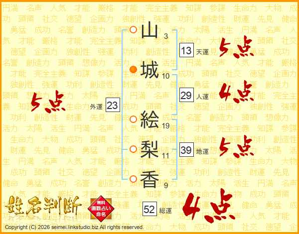 山城絵梨香さんの総運は52画の4点!