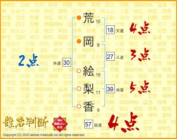 荒岡絵梨香さんの総運は57画の4点!