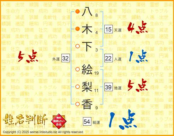 八木下絵梨香さんの外運は32画の5点!