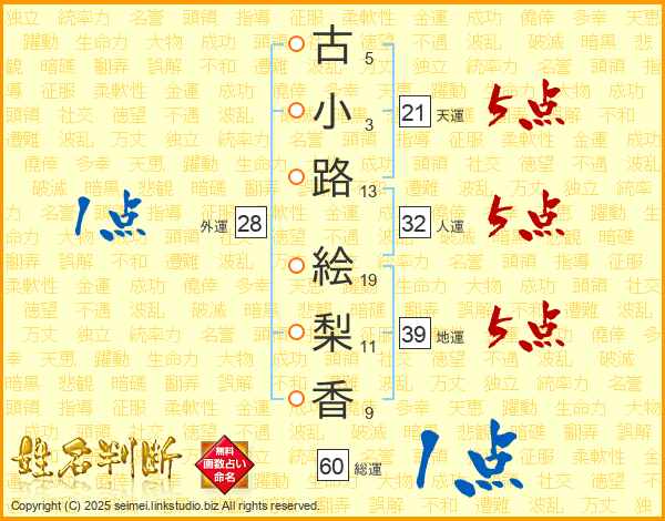古小路絵梨香さんの天運は21画の5点!