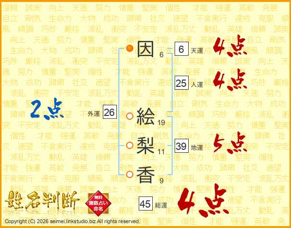 因絵梨香さんの総運は45画の4点!