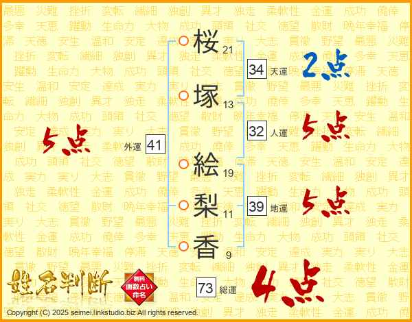 桜塚絵梨香さんの外運は41画の5点!