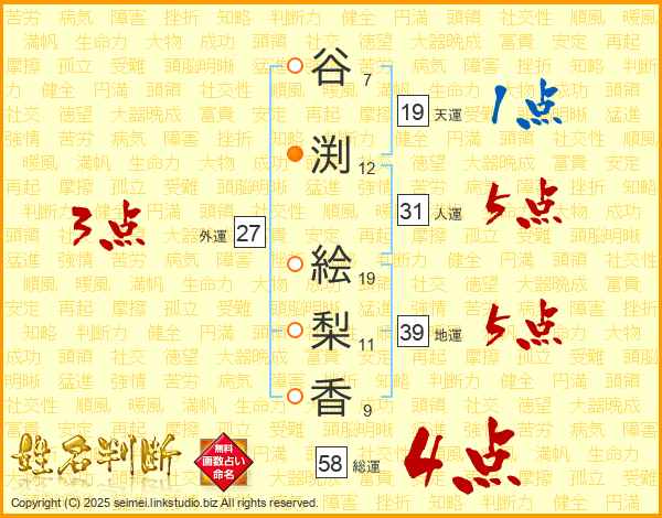 谷渕絵梨香さんの総運は58画の4点!