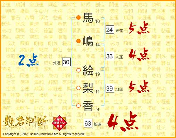 馬嶋絵梨香さんの総運は63画の4点!