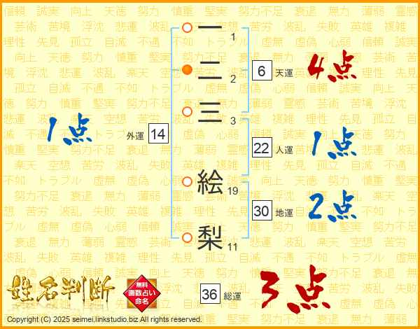 一(1画)二(2画)三(3画) 絵(19画)梨(11画)