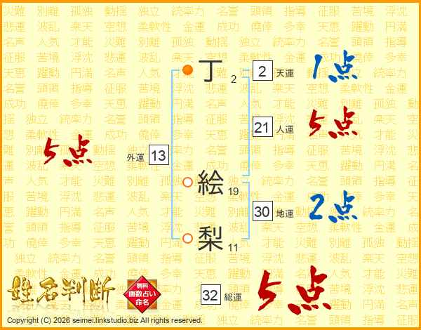 丁絵梨さんの総運は32画の5点!