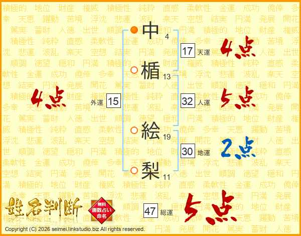 中楯絵梨さんの総運は47画の5点!