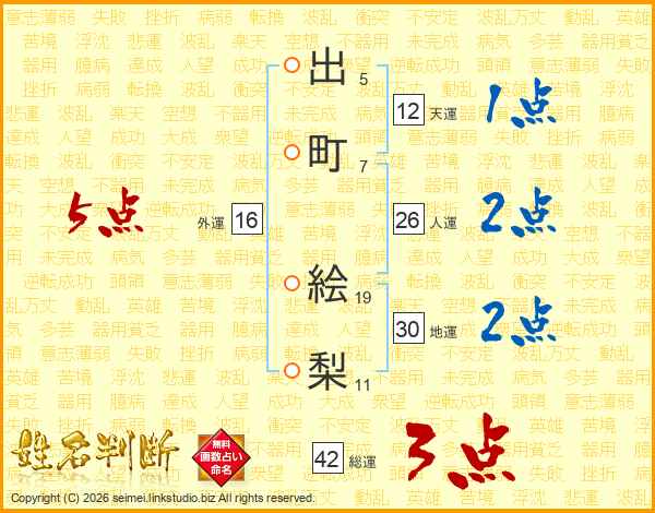 出町絵梨さんの人運は26画の2点!