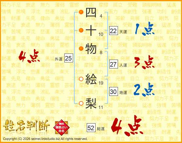 四(4画)十(10画)物(8画) 絵(19画)梨(11画)