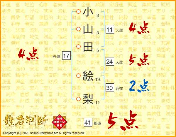 小(3画)山(3画)田(5画) 絵(19画)梨(11画)