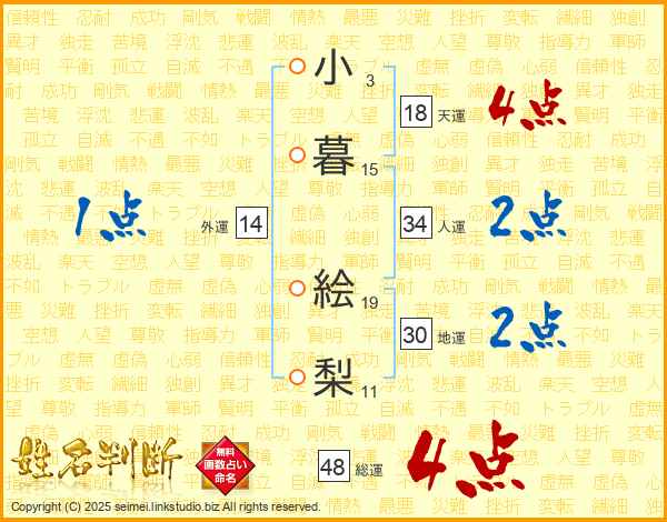 小(3画)暮(15画) 絵(19画)梨(11画)