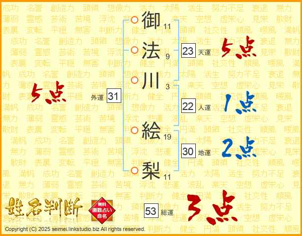 御法川絵梨さんの総運は53画の3点!