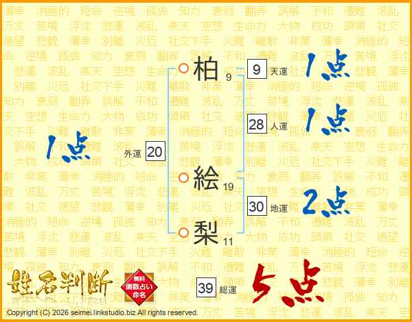 柏絵梨さんの総運は39画の5点!