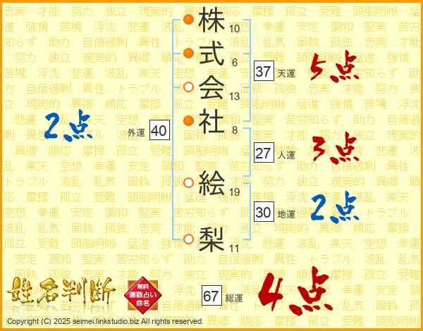 株(10画)式(6画)会(13画)社(8画) 絵(19画)梨(11画)