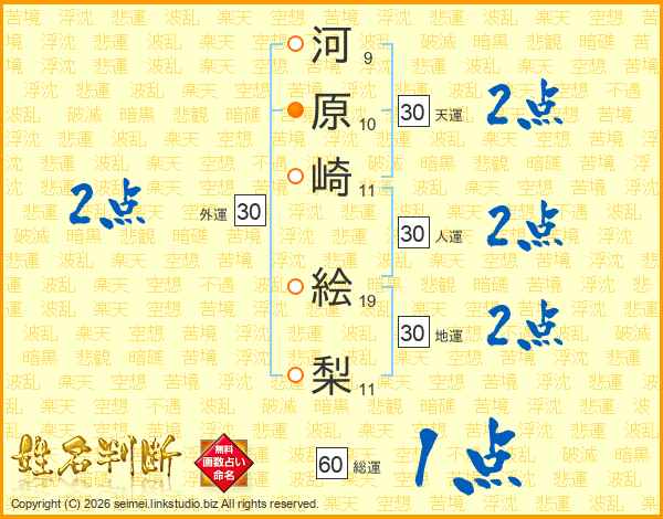 河原崎絵梨さんの天運は30画の2点!