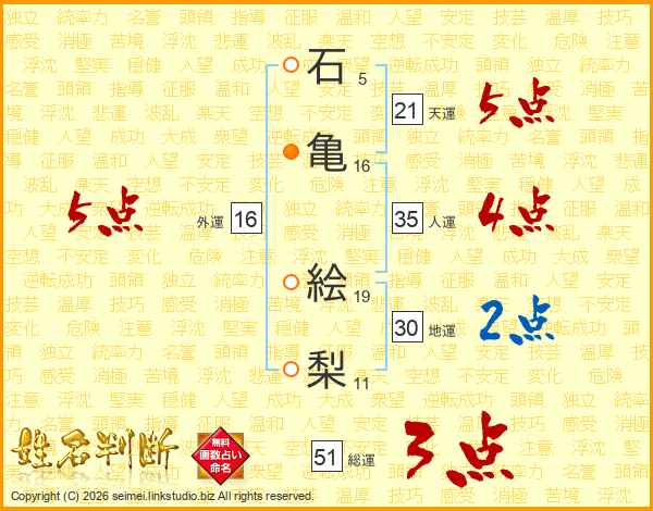 石亀絵梨さんの天運は21画の5点!