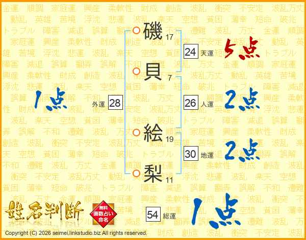 磯貝絵梨さんの天運は24画の5点!