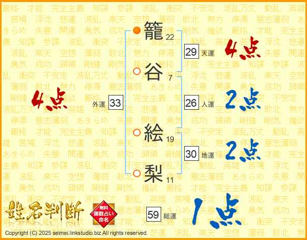 籠(22画)谷(7画) 絵(19画)梨(11画)