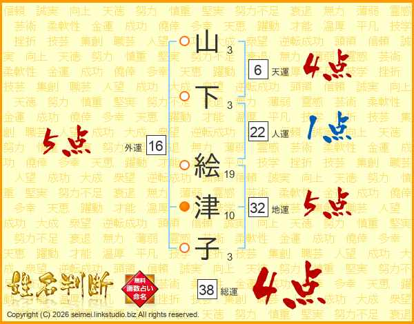 山下絵津子さんの総運は38画の4点!