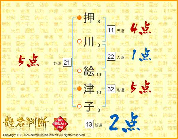 押川絵津子さんの外運は21画の5点!