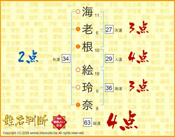 海老根絵玲奈さんの総運は63画の4点!