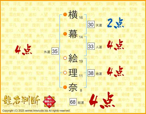 横幕絵理奈さんの総運は68画の4点!