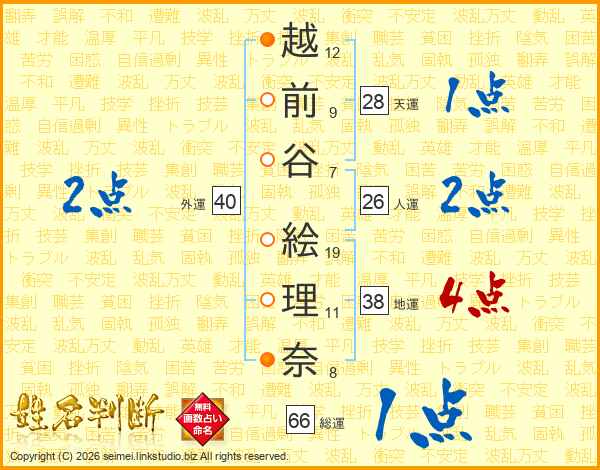 越前谷絵理奈さんの総運は66画の1点!