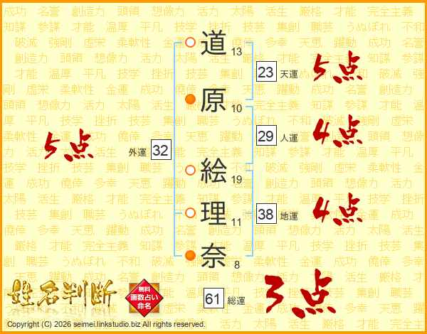 道原絵理奈さんの外運は32画の5点!