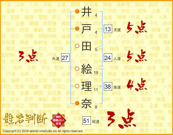 井戸田絵理奈さんの総運は51画の3点!