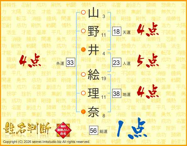 山野井絵理奈さんの外運は33画の4点!