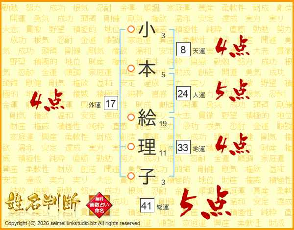 小(3画)本(5画) 絵(19画)理(11画)子(3画)