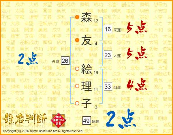 森友絵理子さんの総運は49画の2点!