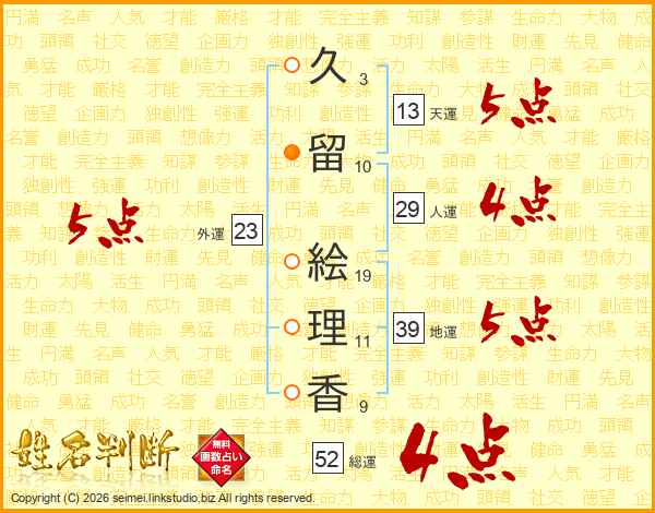 久留絵理香さんの総運は52画の4点!