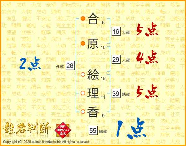 合原絵理香さんの天運は16画の5点!