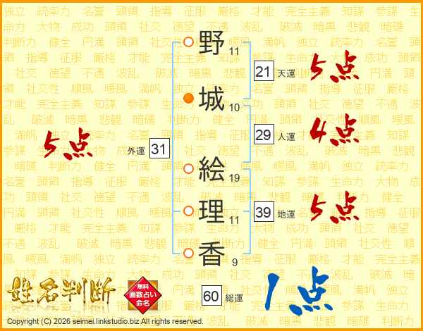 野城絵理香さんの天運は21画の5点!