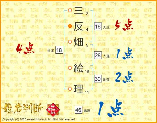 三(3画)反(4画)畑(9画) 絵(19画)理(11画)