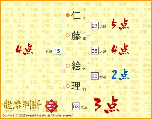 仁(4画)藤(19画) 絵(19画)理(11画)