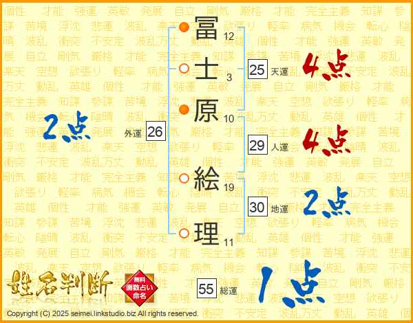 冨(12画)士(3画)原(10画) 絵(19画)理(11画)