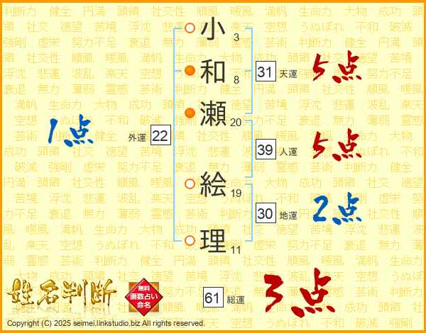 小和瀬絵理さんの人運は39画の5点!