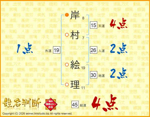 岸村絵理さんの人運は26画の2点!