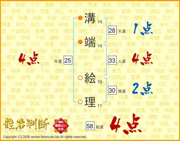 溝端絵理さんの総運は58画の4点!