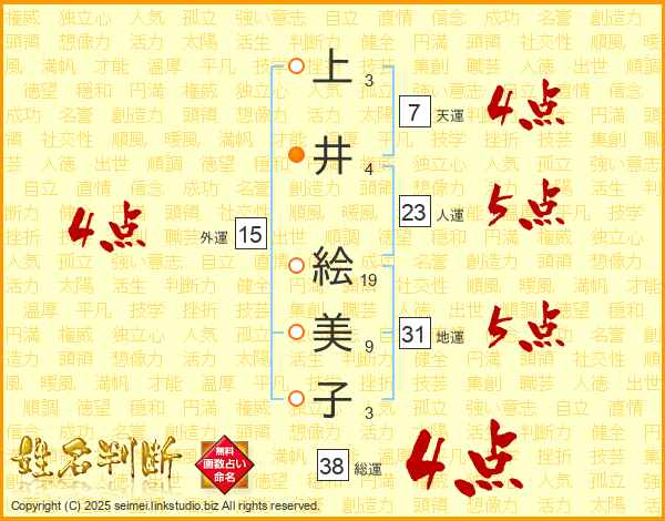 上(3画)井(4画) 絵(19画)美(9画)子(3画)