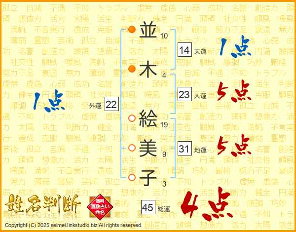 並(10画)木(4画) 絵(19画)美(9画)子(3画)
