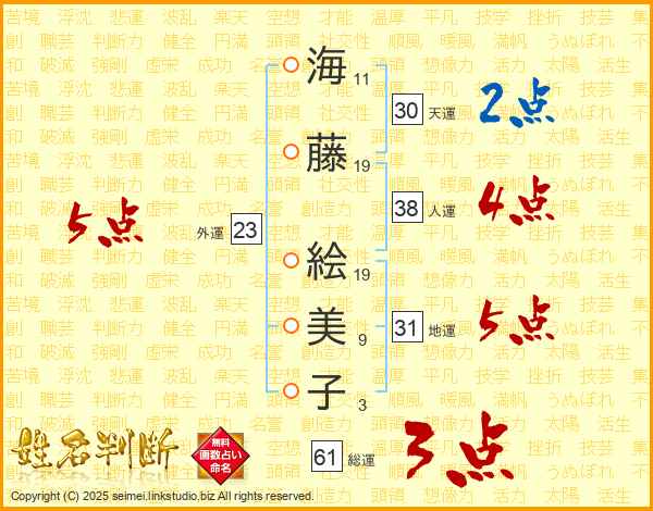 海藤絵美子さんの地運は31画の5点!