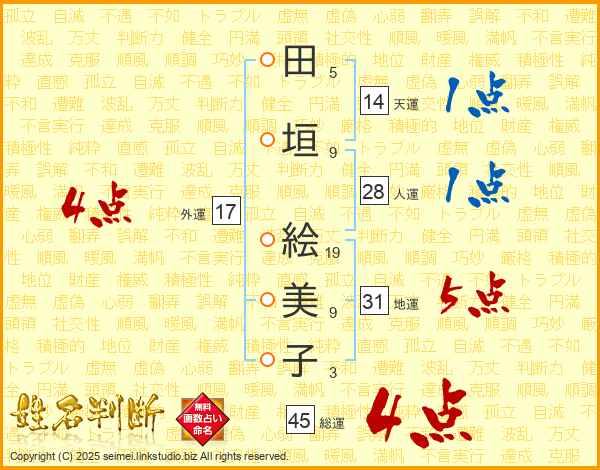 田垣絵美子さんの総運は45画の4点!