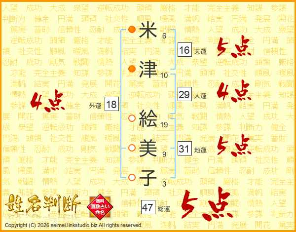 米津絵美子さんの総運は47画の5点!